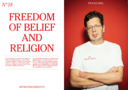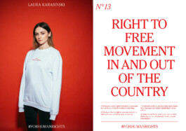 To make us aware that these rights belong to us, wherever we are, we have made them wearable. _For Human rights was a small personal campaign initiative started by Leo Scheichenost and myself, supported by our dearest friends and collegues.